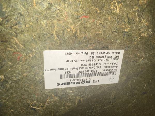 Light gray ceiling panels from Mercedes Sprinter W906 (2014-2018), 170 wheel base for rear passenger and cargo section.
