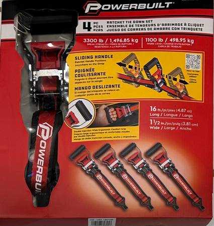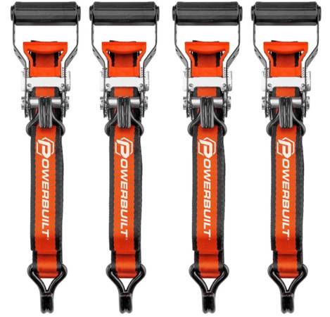 Secure your load with confidence using the Powerbuilt Ratchet Tie Downs, 1.5" x 16' (4-Piece Set). Built for everyday hauling and weekend projects, these heavy-duty straps combine long reach with rugged hardware to keep gear locked down tight in trucks, trailers, roof racks, and UTV/ATVs.