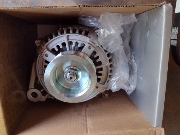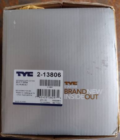 New, never installed TYC alternator model 2-13806. New NOT remanufactured. Per the spec sheet the alternator produces 147 amps at 3500 RPM. Also included are 2 ribbed belts. One belt is for the...