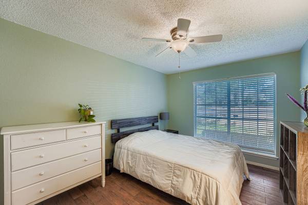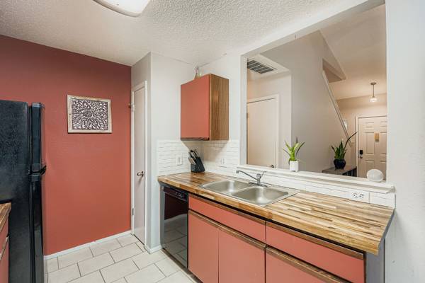Welcome a 2-bed, 2-bath condo in North Austin. The open living area flows into a well-appointed kitchen with butcher-block counters, perfect for everyday living. Each bedroom is on a separate level for added privacy, and the home includes in-unit laundry, central air, backyard, and two dedicated parking spots behind the unit. Enjoy community amenities like the pool and easy access to I-35, The Domain, and major routes, all in a quiet setting. Available as a partially furnished rental for $1,650/month which includes a bed (mattress, bedding, pillows), dresser, two shelves, couch, dining table + 4 chairs, two lamps, Instapot, ninja blender, set of plates and bowls, mugs, water glasses, silverware, cooking pots, baking pans, and serving spoons.