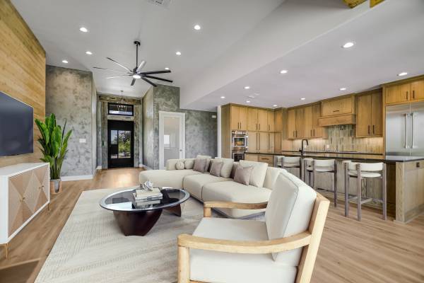 DESCRIPTIONFall in love with this impeccably renovated home set on a beautifully rolling 4.42-acre lot in the highly desirable gated acreage community of The Hills. Meticulously redesigned by the owner/builder, this residence underwent a complete transformation, including new windows, doors, flooring, plumbing, lighting, stucco, roof and much more. Only the finest materials were selected for this exquisite rebuild. Step inside to discover an expansive living area boasting soaring 12-foot ceilings, a cozy wood-burning stove, luxury vinyl plank flooring, knotty pine accent walls and floor-to-ceiling windows framing spectacular Texas Hill Country views. The gourmet kitchen is a chef's dream, featuring handcrafted cabinetry, elegant granite countertops, and top-of-the-line Thermador stainless steel appliances, including a 6-burner gas cooktop. The spacious primary suite includes a comfortable sitting area, an expansive custom walk-in closet, and a luxurious bath complete with dual granite-topped vanities, a standalone soaking tub, linear fireplace, and a beautifully tiled shower. Two additional bedrooms connected by a stylish Jack-and-Jill bathroom offer inviting accommodations for guests. Other amenities include a formal dining room with fireplace and wine room. Outdoors, relax on the spacious patio, appreciate lush grounds with mature trees, a raised-bed garden, large storage shed, and 2-car garage. Enjoy rural tranquility just minutes from Lake LBJ and Horseshoe Bay Resort. Schedule your showing appointment today!