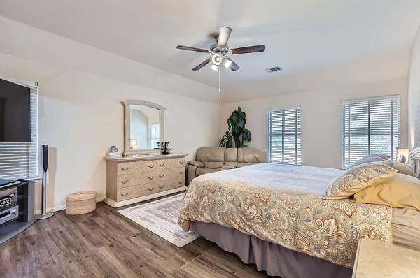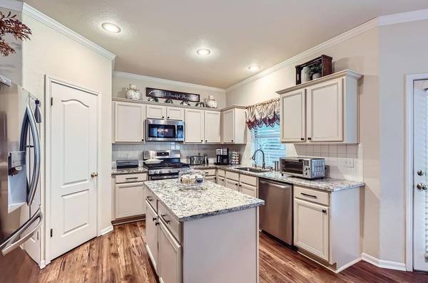 Beautiful & spacious two story home, nestled in the desirable neighborhood of Eagle Ridge in Round Rock. As you step into the home, you are greeted by Luxury Vinyl Plank flooring that runs throughout the entire home - that's right, no carpet here! The formal living and dining rooms provide ample space for entertaining and holiday gatherings. The family room features a stone fireplace, ceiling fan, and crown molding (which also runs throughout the first floor), and flows into the breakfast nook and center island kitchen. The kitchen features granite counters, stainless steel appliances, corner pantry, and a built-in desk, perfect for working from home. Upstairs you'll find all the bedrooms, plus laundry room and an additional living area, which can be used as an office, game room, media room, whatever you need! The primary suite features plenty of space for all your large furniture, and full bath with dual vanity, garden tub, separate walk-in shower, and walk-in closet. The spacious backyard features a patio shaded by a nice large tree, plus a storage shed for your yard tools. Recent updates include the roof (4 years old), HVAC & Furnace (3 years old). Located in the heart of Eagle Ridge, you'll never be far from parks (including popular Meadow Lake Park & Old Settlers Park), showing, restaurants, and more! You'll also be a short drive to the Round Rock Outlets, Major Hospitals, Texas State Round Rock and ACC, plus Kalahari Resort! Come see this amazing home and make it yours today! !