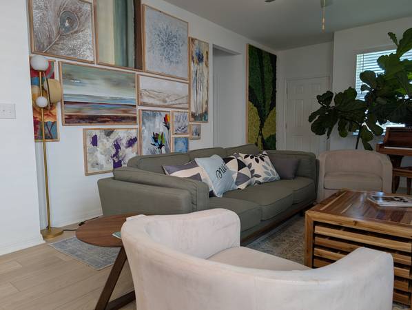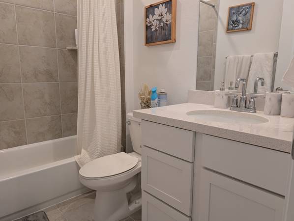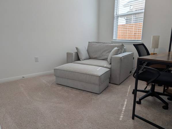 Looking for one roommate in a 3-bedroom 2-bath house. You get the two furnished guestrooms and your own bathroom, essentially your own section in the house. Both rooms have its own closet, one is set up as a bedroom with a king-sized bed, the other is set up as an office with a convertible sofa.