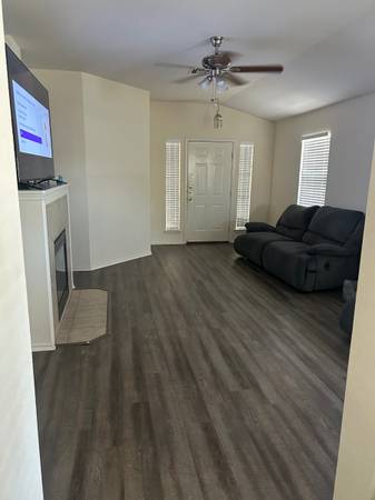 Open concept home. Big backyard. Utilities included. We are dog owners. We have outside doggies very friendly and loving.