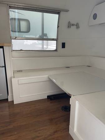 In 2021, I hired Motivated RV to renovate the inside ($10,000). They built a custom butcher block counter and a dinette that folds into a bed, with storage underneath. They also repaired some items, such as the underbelly.
