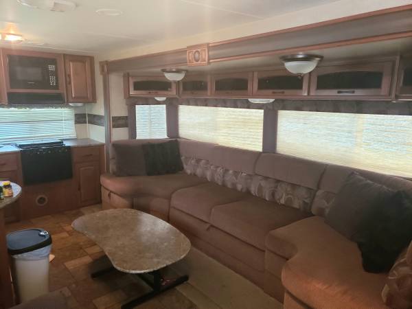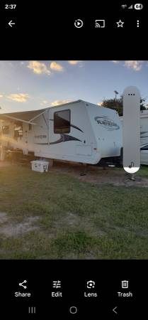 Front door, water heater, breakers, dual propane tank regulator and city water hookup all new. Trailer just serviced and inspected by Fun Town RV in Giddings. Awning, roof coating, tires, rims, black water tank, outdoor shower all replaced in the last 2 years. Used only on holidays and long weekends, so in excellent condition.