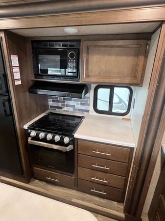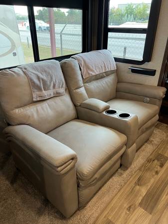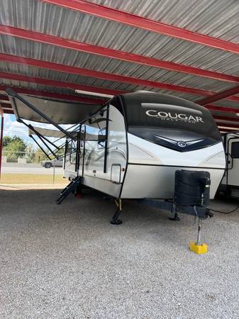 The trailer has auto-leveling and two awnings, a working fireplace, brand new TV, and new tires. Owners Purchased a class C and are ready to sell.