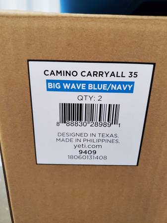 I am selling my Brand New/Never Used YETI Camino Carryall 35 2.0 Big Wave Blue Tote Bag for $250.00 firm. It is brand new and it has never been used so it does NOT have any stains, damage or foul odors whatsoever. It still has the tags and the Owner’s kit/paperwork (legible QR codes) so that the new owner can register these for Yeti’s warranty.