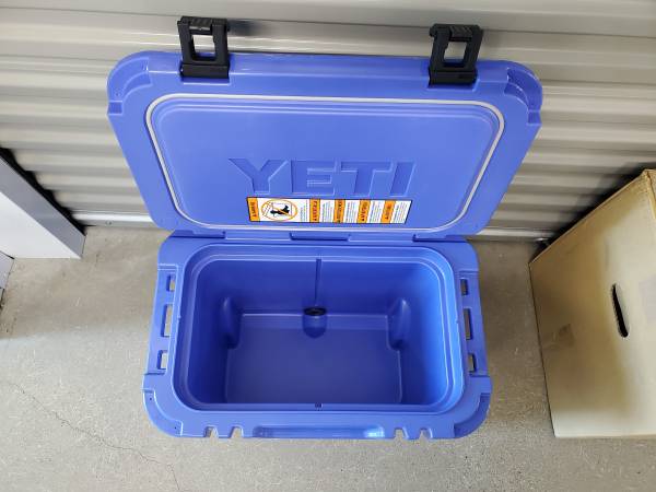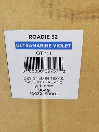 I am selling my Brand New/Never Used Limited Edition YETI Roadie 32 Wheeled Hard Cooler in Ultramarine Violet for $340.00 firm. It is brand new and it has never been used. It still has the tags and the Owner’s kit/paperwork so that you can register it for Yeti’s warranty. It does NOT have any stains, damage or foul odors.