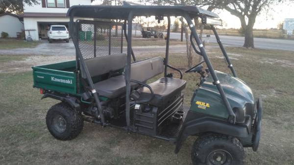 I have a 2008 Kawasaki Mule 4x4 Mule 3010 Diesel for sale. It has power steering and 1064 hours. It's been a great machine, but we have a new one and don't need this one anymore. It has been used on our ranch for the last 8 years. It has a new battery. It's not new, but runs well, and should last a long time. These old things are tough. If you are interested, and you aren't a scammer, then you can text me at 3 two 5, six 5 zero, 6 zero zero 4. Might consider trades, depending on what it is.