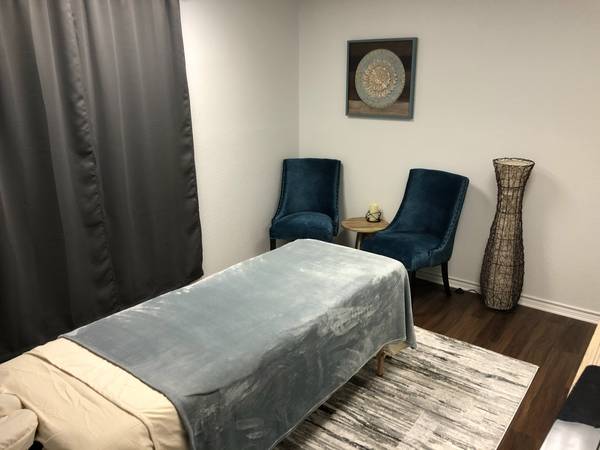 The rooms start at $385 per month. That gets you 5 half days per week (which is 20 to 25 half days a month). A half day is 6am-3pm or 3:30pm-10pm (or take a full day and that’s considered two half days). The days you pick are yours every week, and no one else will be booking into the room at that time. You have the option to add additional half days if the 5 half days are not enough, but we find that most practitioners build a full time business with that time.