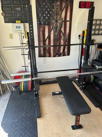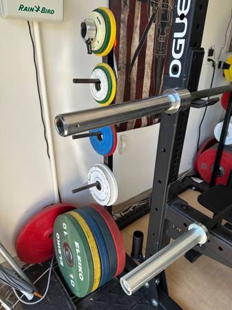 Serious home gym setup – everything you need for powerlifting, Olympic lifting, or general strength training. Premium brands (Rogue, Eleiko, American Barbell, Texas Power Bar) in excellent condition.