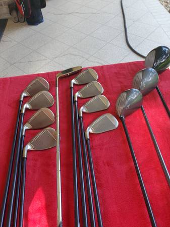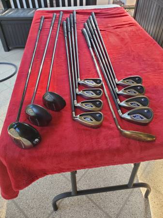 The driver is a Callaway VFT 9.5* driver with a Callaway RCH 65g graphite firm flex shaft. The fairway woods are Callaway VFT woods with lofts of 3-15* loft regular flex shaft, the 5-19* degree loft wood has a firm flex shaft.