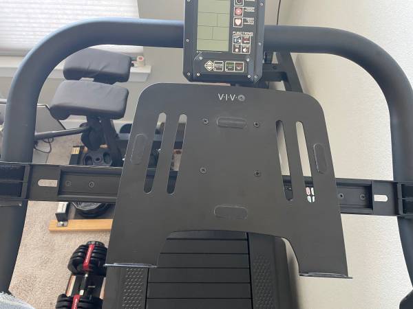 Vivo universal laptop stand for treadmills. Adjustable height/tilt ability and adjustable width. Secures around treadmill bars so you can use your laptop while on the treadmill. Works great! Bought...