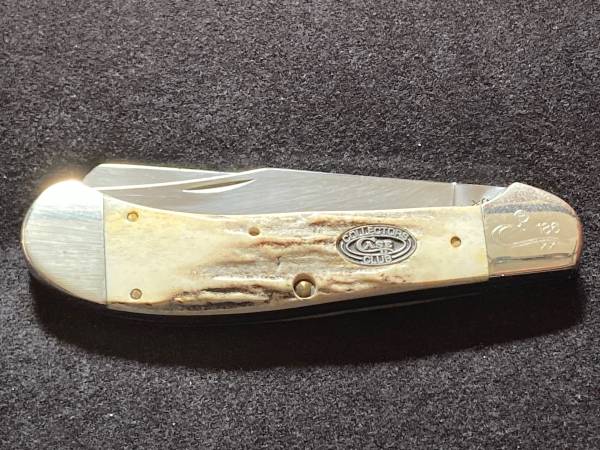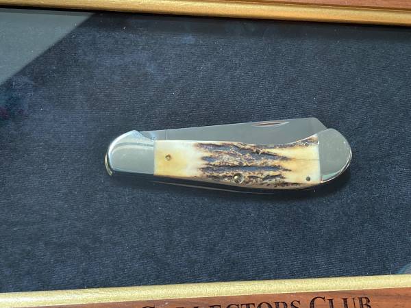 LARGE SADDLE HORN KNIFE WITH REAL STAGE HANDLES, AND FANCY FACTORY GLASS AND WOOD DISPLAY CASE. THIS IS A SPECIAL COLLECTORS EDITION #186. XX52100SS. MADE IN 2007. THIS HAS NEVER BEEN USED. THIS IS VERY RARE. IT IS NOT MADE ANYMORE. I AM FORCED TO SELL SOME OF MY RARE CASE KNIVES. YOU WILL NEVER FIND ANY OF THESE RARE CASE KNIVES, PRICED AS CHEAP AS MINE. IF INTERESTED, LET ME KNOW.. PS IF THIS IS STILL POSTED, IT IS STILL FOR SALE. THANK YOU.