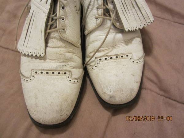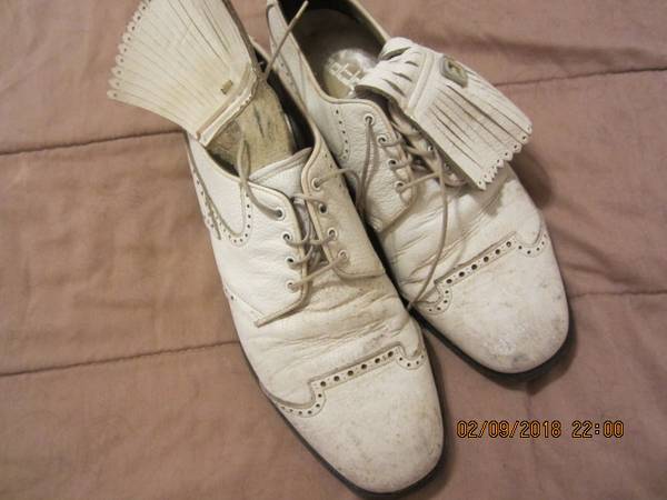 $20 cash and no shipping and no low ball offers Great pair of white FootJoy Classics shoes If you where a normal shoe size 10.5 medium, these will fit you