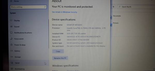CPU: Intel Core i5-7300U 2.6GHZ