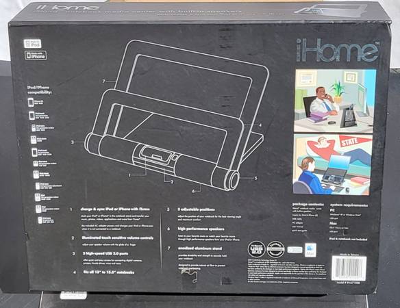 From a Private Collection: This iHome iStand Notebook Media Center was gently used and returned to its original box shortly after purchase. It remains in excellent condition with protective packing still intact and was fully functional when last used. Clean, well-stored, and ready for a new home.