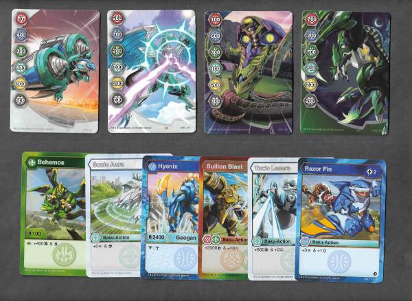 10 Bakugan cards 4 of the thicker cards and 6 regular overall in good used condition see scans for details $15