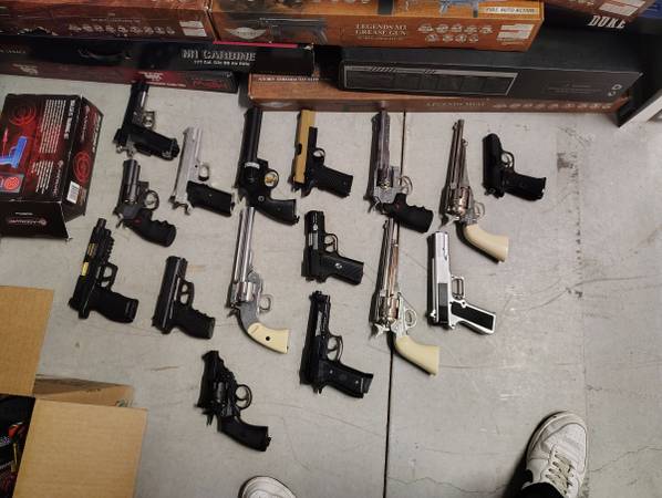 I have my collection of BB guns I'm trying sell a couple to slim down the number most are lightly used in box and some are out of the box but they all work if you have any questions feel free to ask I'm selling the pistols for 50$ to 70$ and the rifles 100$ to 150$