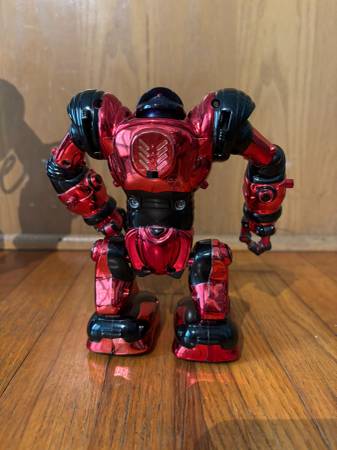 Whether it's with kung fu, rapping, or dancing, Robosapien X was made to entertain. This 'bot can react to sounds or by being touched, picked up or kicked, and comes with an I/R remote control and smaller autonomous robot. 1st generation, rare metallic rare & signed Mark Tilden.