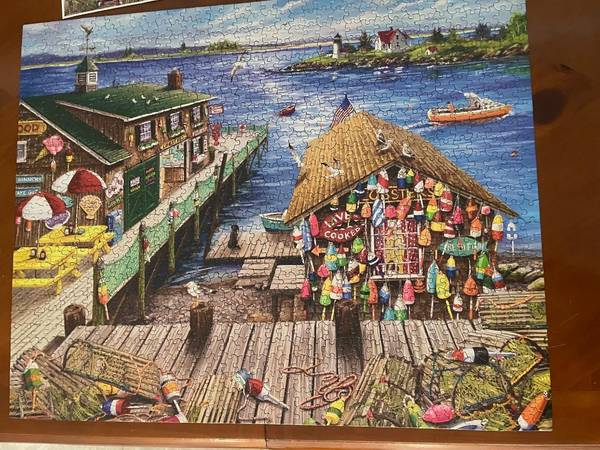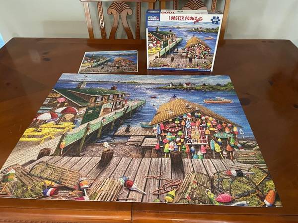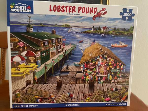 "Lobster Pound" White Mountain Quality 1000 Piece Puzzle for $6. No pieces missing and smoke free home. Pickup in Sun City, Georgetown. Thank you!