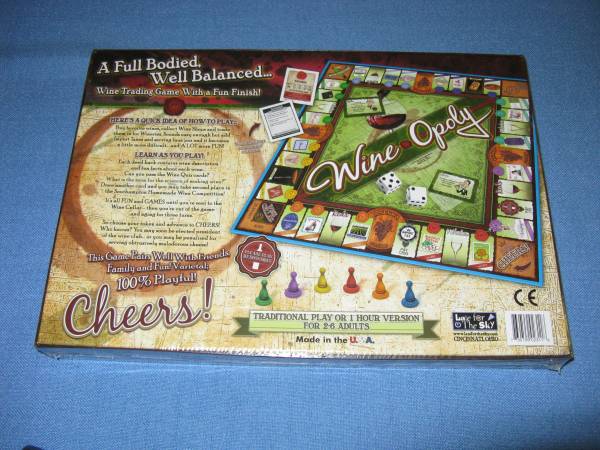 FACTORY SEALED BOARD GAME WHITETAIL OPOLY $20. FACTORY SEALED BOARD GAME WINEOPOLY $15. CAN BE SOLD SEPARATELY I DON'T KNOW ANYTHING ABOUT THESE GAMES CASH ONLY. NO SHIPPING. WE HAVE MORE....
