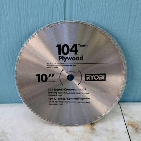 Ryobi circular saw blade set. 10-pack, all 10", all brand new (open-box). Set includes: 2 - 24 teeth, carbide tipped, fits 5/8" Arbor 2 - 36 teeth, carbide tipped, fits 5/8" Arbor 2 - 36 teeth,...