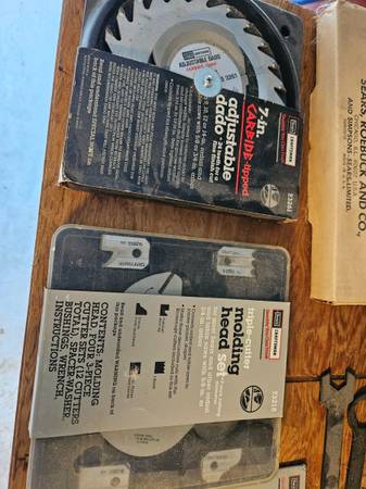 Sears Craftsman 10" Radial saw and accessories. includes Saw, 2 additional 10" blades (new in box), adjustable dado blade (new in box), molding head, lower guard, accessory guide and tools pictured....
