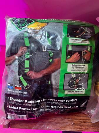 Have 2 like new in factoty packaging saftey harneses , have 2 of the safyey lanards as well , also have a full body harness for tree trimming , price negotiable as i dont use.