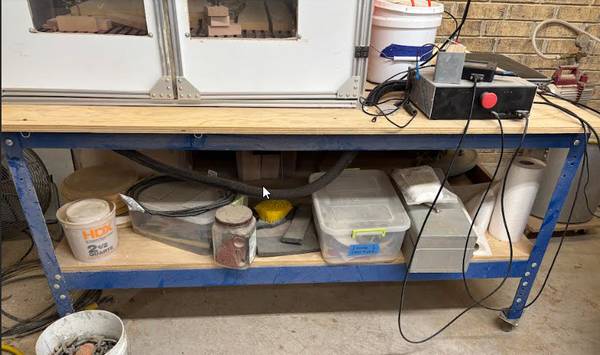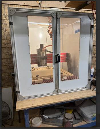 8) 8020 aluminum "cage" with Masonite panels (controls dust in the shop)