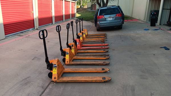 I have these nice titan pallet jacks for sale. I have a total of 8 of them. $220.00 Each 7 titans and 1 franklin. They're in good overall condition. They have scrapes and dings but they all work as...