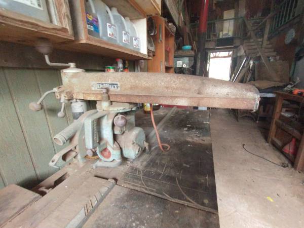 Here is a 1950s radial arm saw with table , it belonged to my husbands father and then to my husband. It is in good working order CALLS ONLY 512 seven zero four 6851