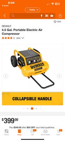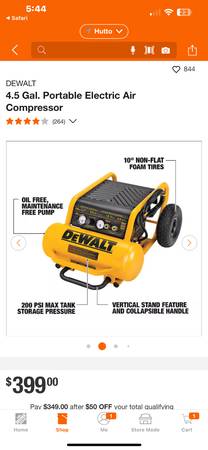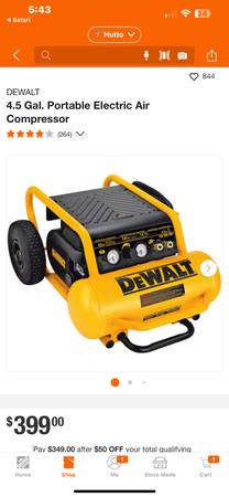 NEW - DEWALT 4.5 Gal. Portable Electric Air Compressor. With tax would cost $432 in the store. ASKING $375 or best offer. Cash, Zelle, Venmo, cash app, Apple Pay. No trades. Text for fastest...