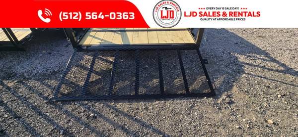 STK - 05437 77 X 14 UTILITY TRAILER 4 SLIDE IN RAMPS 6 PLY TIRES 5 LUG 2 COUPLER PIPETOP 4 CHANNEL FRAME 7K JACK SPARE TIRE MOUNT 2' DOVETAIL 3' TAILGATE 7000 LB GVWR 5800LB PAYLOAD 4 D-RINGS REAR...