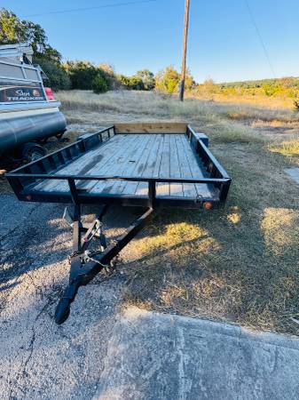This is a great utility trailer. It is 7 feet wide by 12 feet long the front sides come off and make ramps You can also load it from the side or the back.