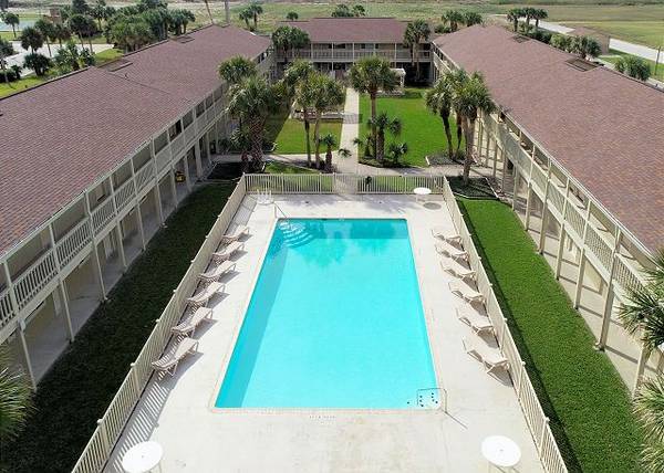 Great location in Port Aransas at the Courtyard Condominiums (622 Access Road 1A). Complex is a short 4 minute walk to the sand and waves.