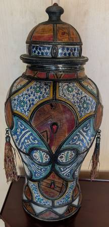 This stunning large Moroccan ceramic lidded ja