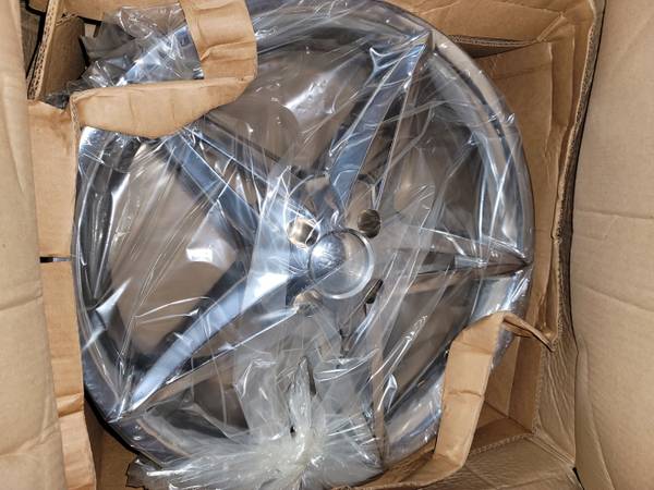 These 20-inch Foose wheels are pre-owned but remain in excellent condition, carefully stored and minimally handled. The fifth rim is still new in box, making it ideal as a backup or spare replacement.