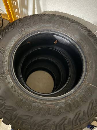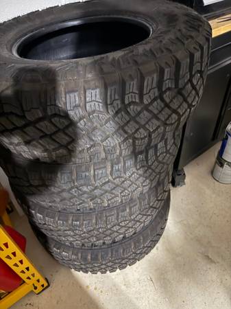 New take off Goodyear Territory MT in size LT 275/70/18. These are 33” off-road tires from a Silverado ZR-2. Perfect upgrade for anyone with a Trailboss and the stock 32’s, no worry about rubbing....