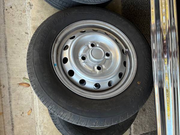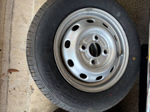 Steel wheel 12 4-100 JDM - CATY - KEI Japanese vehicles, also many trailers. With brand new tires, mounted & balanced 145/45/12 wheel spacers as well if needed $200. OBO location 3 mi. West. of...