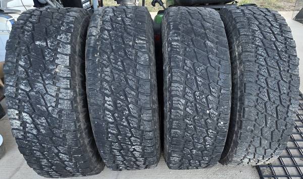 Nitto Terra Grappler Heavy Duty All Terrains 285/75/17 E Range. Tires are in great shape. They have about 75% life left, still have the rubber tit's on them. $400 OBO