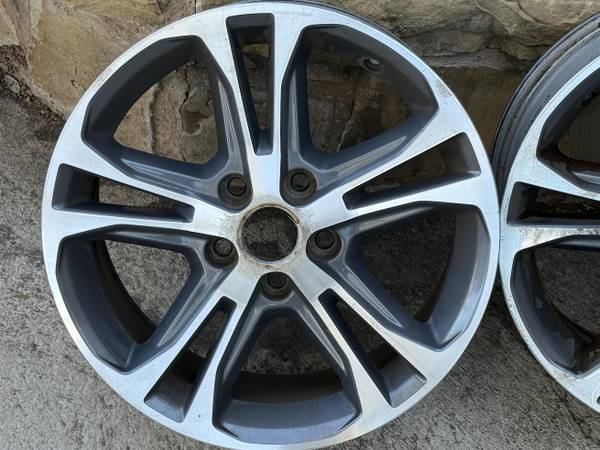 I upgraded my 2014 Mustang with refurbished rims, so now I have 4 old rims without dents or edge damage. There is typical age related staining and surface deterioration - mostly at the their center caps. Price is $100 for all four. These are perfect for refurbishing.