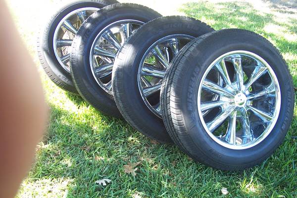 A set of 275/55r20 Michelin tires on FOOSE impression wheels. 6 lug pattern. Came off my 2007 Chevy Avalanche. Ask about two of the tires. Asking $550.00. Call show contact info