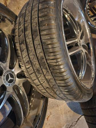 Clean wheels came off of Mercedes SUV. 22-in Wheels with Pirelli Scorpion tires Tires about 65% tread left. And got a different vehicle and no longer need the wheels but need the space in the garage. They are dirty they just came off a vehicle last week but no curb rash no stains really clean wheels. And they have the tire pressure monitors with them. All reasonable offers considered. I believe the name brand of the wheels are XIX. Cash or cash app only I do have the original center caps lug nuts for those Wheels.