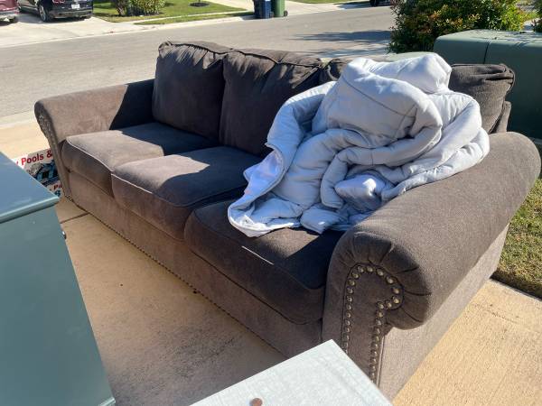 Have a nice couch, IKEA cadenza, and two end tables. All almost brand new, moving and can’t take with me. They will be in the driveway of 232 Brady Creek Way in Leander. Come and grab it all!