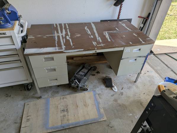 29.5" tall 60" wide 30" deep Has 5 very large drawers, good for storing parts or tools. I've used this for wood working and painting so the top has some shallow cuts and paint on it