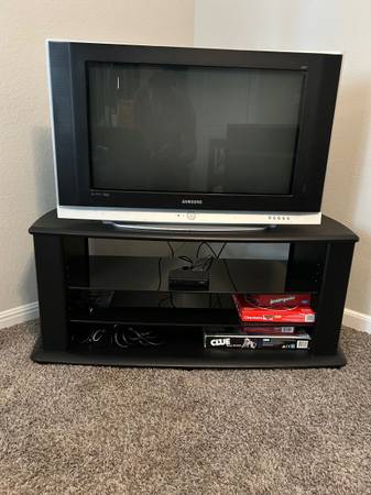 Got another TV and need to get rid of this 32 inch Samsung TV and black tv stand. The TV is a first generation flat panel HDTV, and it has both, HDMI and traditional ports in the back. Still has great picture and sound quality. Is great for gaming or use it for watching DirecTV (or cable) like I did. Please note that this TV is very heavy. Remote control included.