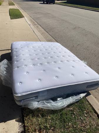 Help yourself to a FREE queen-sized clean Sealy Posturepedic Langley Gel mattress, with no springs popping out. We wanted something new, and it is sitting on a plastic covering....