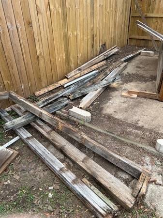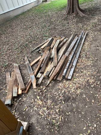 Mostly 2x4s of various lengths. Some without nails and some with nails. Some screwed together for bench top. I AM NOT LOOKING TO PAY SOMEONE TO HAUL IT OFF SO PLEASE DO NOT ASK.